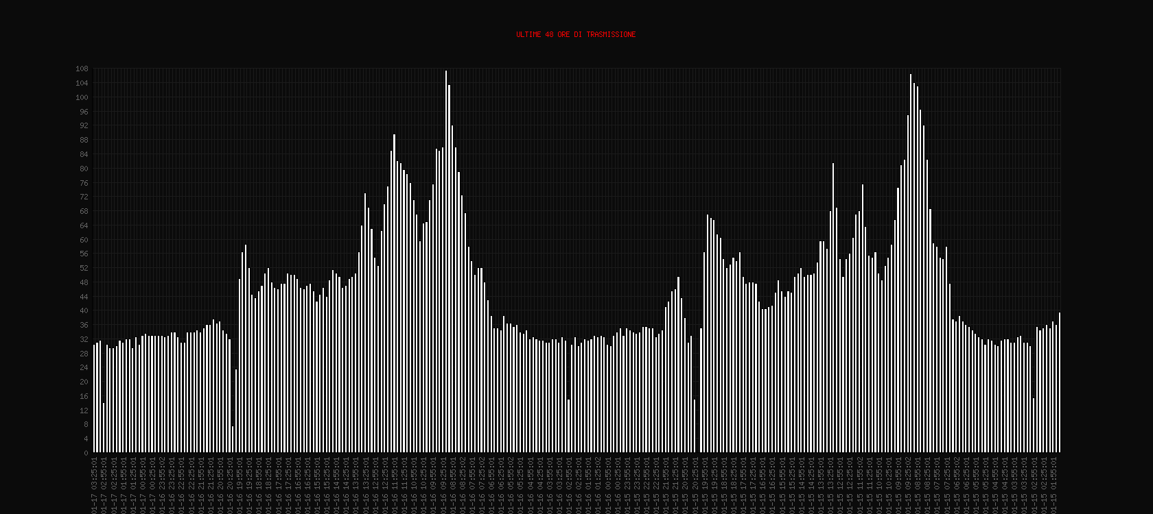 l'ultima rilevazione è a sinistra, puoi confrontare con lo stesso orario del giorno prima a destra (ho volutamente lasciato 45 minuti in più nel grafico per questo motivo!)